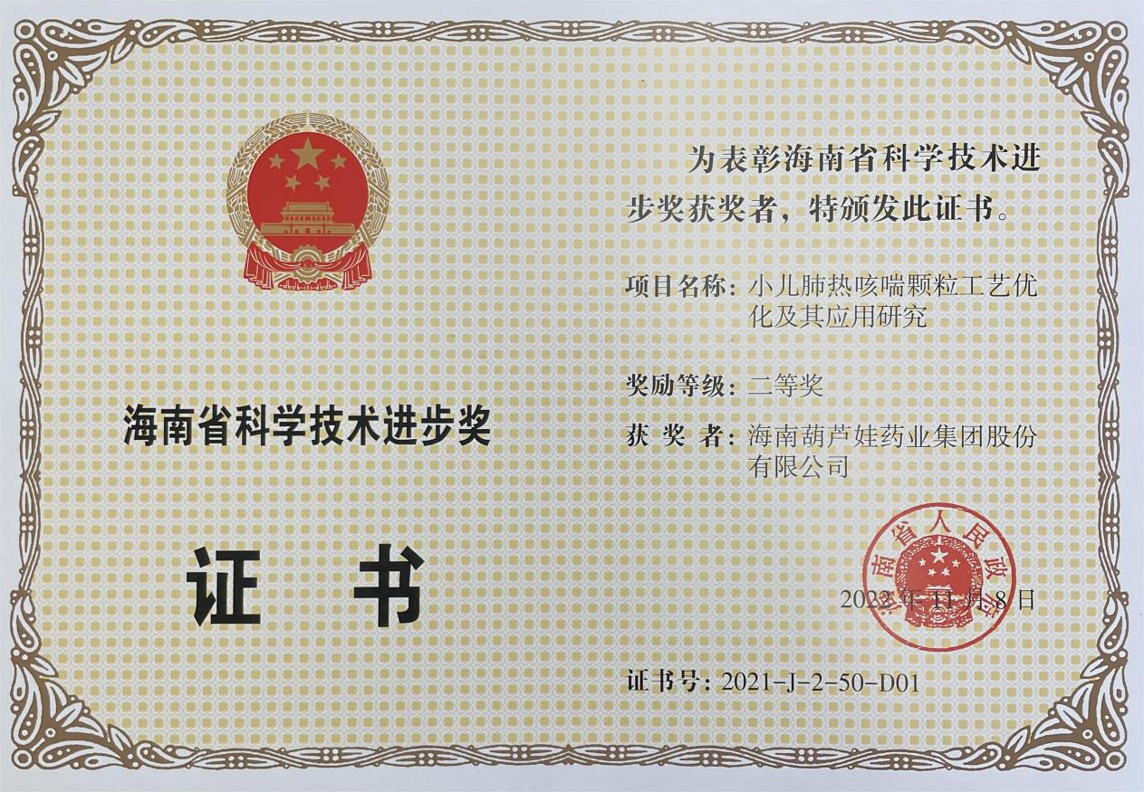 为此,小儿肺热咳喘颗粒的制备方法获得了第二十一届中国专利优秀奖(2019年),专利申请号:ZL201010134951,此次作为专利技术的应用,获得了2021年度海南省科学技术进步奖二等奖。在此之前,超凡国际牌小儿肺热咳喘颗粒还多次被授予“临床价值中成药品牌”、“中国连锁药店最具合作价值单品”,荣登“中国医药品牌榜”。