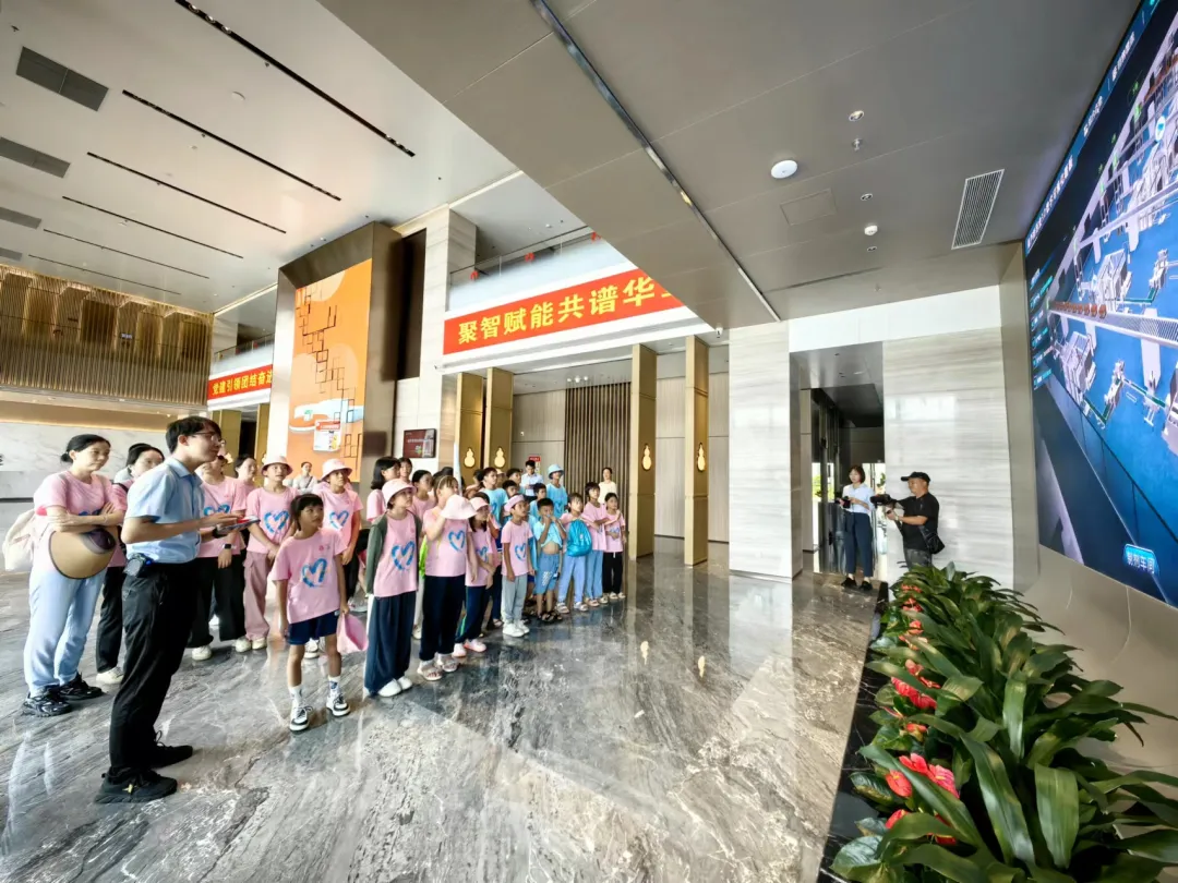 活动一开始,孩子们便迫不及待地踏入了超凡国际药业集团的大厅。3D数字化看板上的生动画面,让孩子们仿佛置身于一个充满科技与创新的现代制药工厂。他们瞪大眼睛,好奇地观察着每一条生产线、每一台设备,听着讲解员介绍超凡国际药业的儿药发展历程。