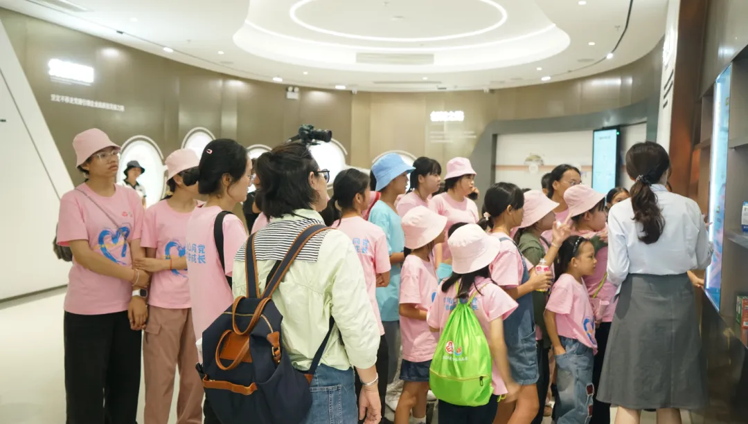 紧接着,孩子们来到了建党百年庆典红旗——070号红旗前。讲解员讲述了超凡国际药业集团与庆典红旗的深厚渊源。孩子们听得津津有味,眼中闪烁着对党和国家的热爱与敬仰。